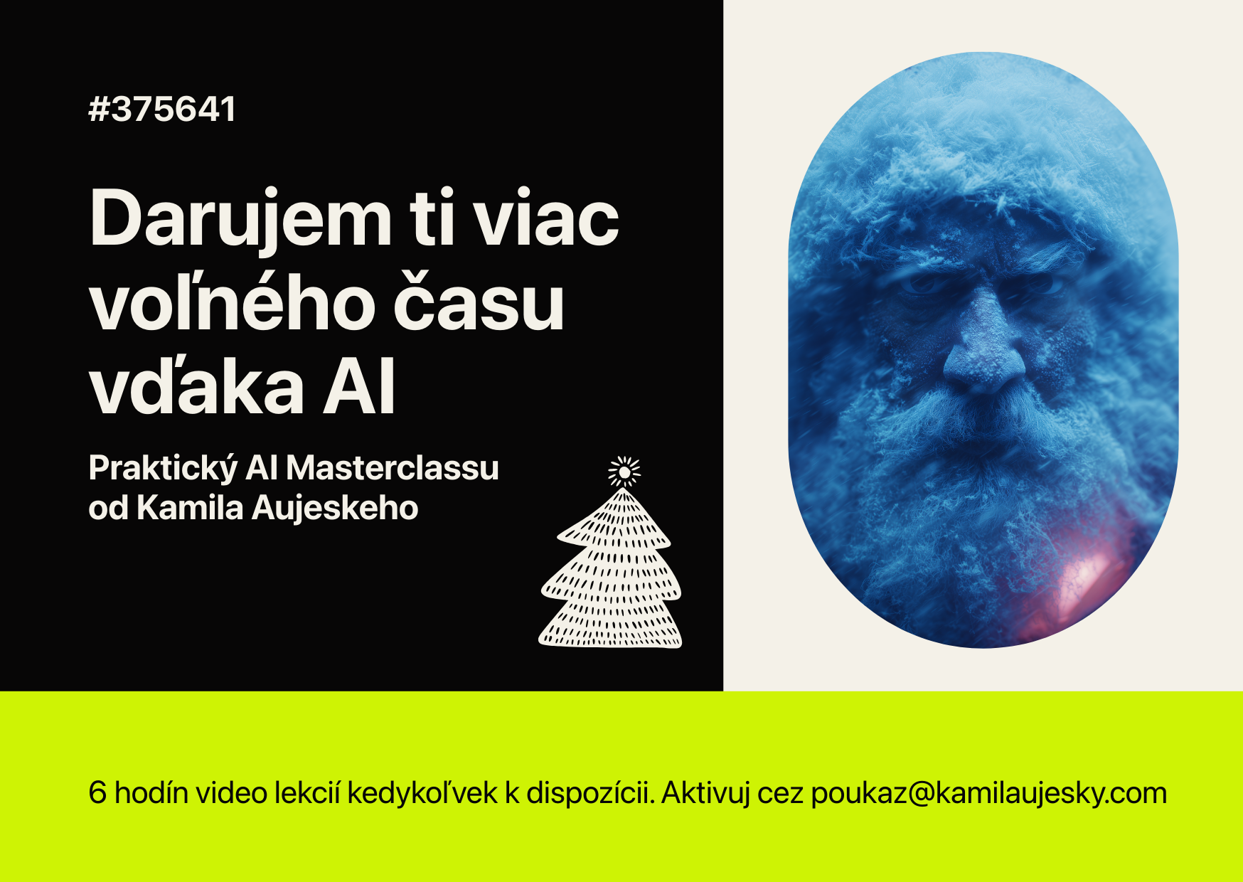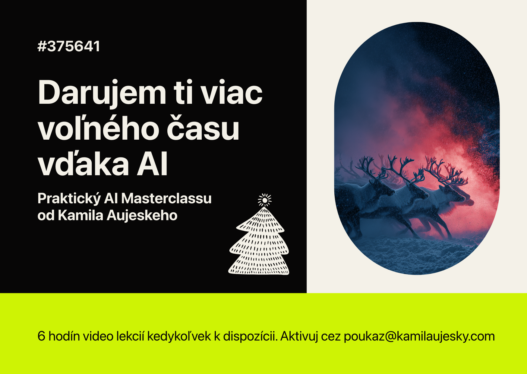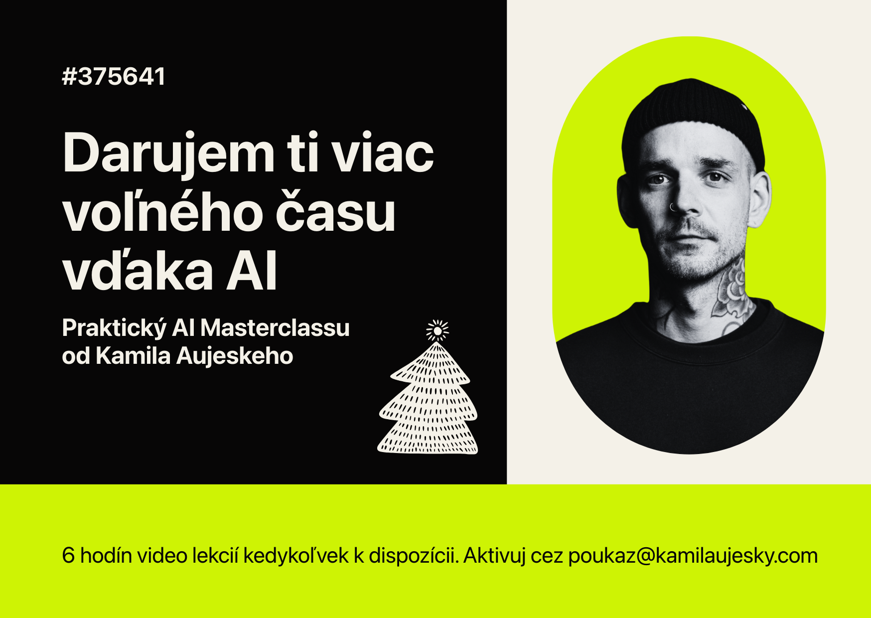 Poukážky v hodnote 129 € bez DPH v jednom zo štyroch dizajnov. V cene je plnohodnotný prístup do AI Masterclassu 2.0 (6 hodín online video lekcií zameraných na produktivitu a kreativitu vďaka AI). Po kúpe príde na email vygenerovaná poukážka v tlačovom formáte.